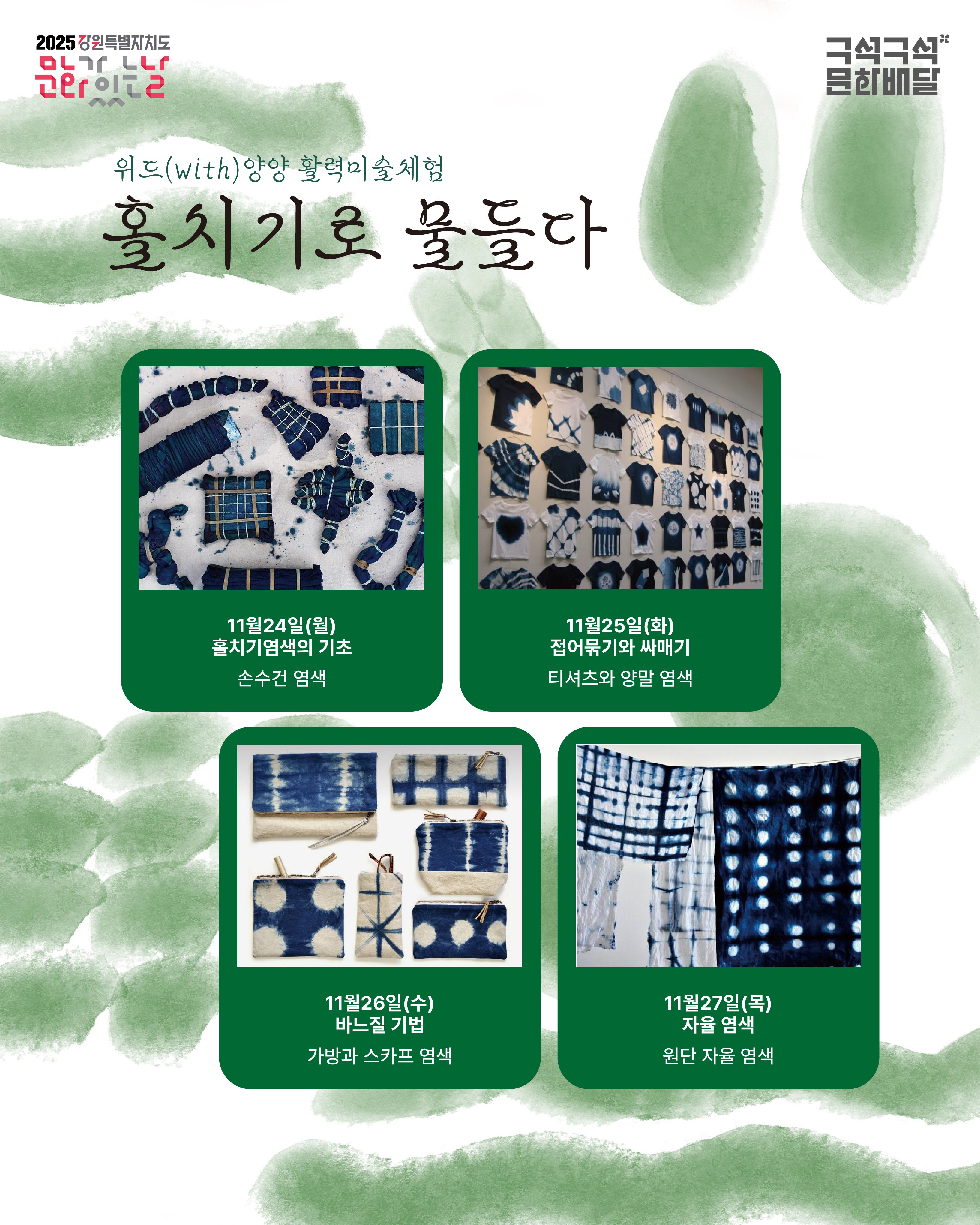 양양문화재단이 선정되어 11월 프로그램 <with 양양-홀치기로 물들다> 참여자를 모집합니다.