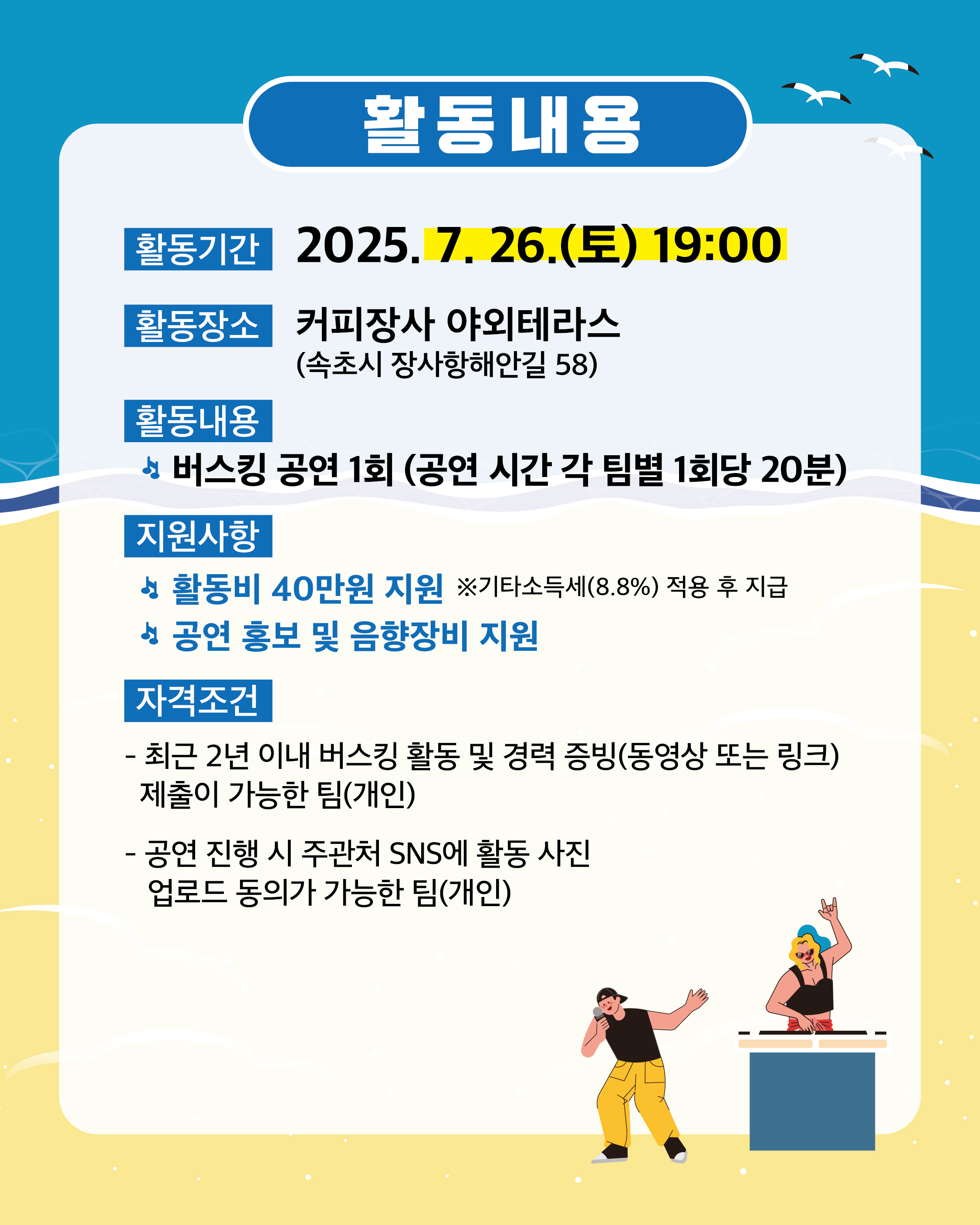 [속초문화관광재단] 2025 속초 문화버스킹 참여자 2차 모집 공고