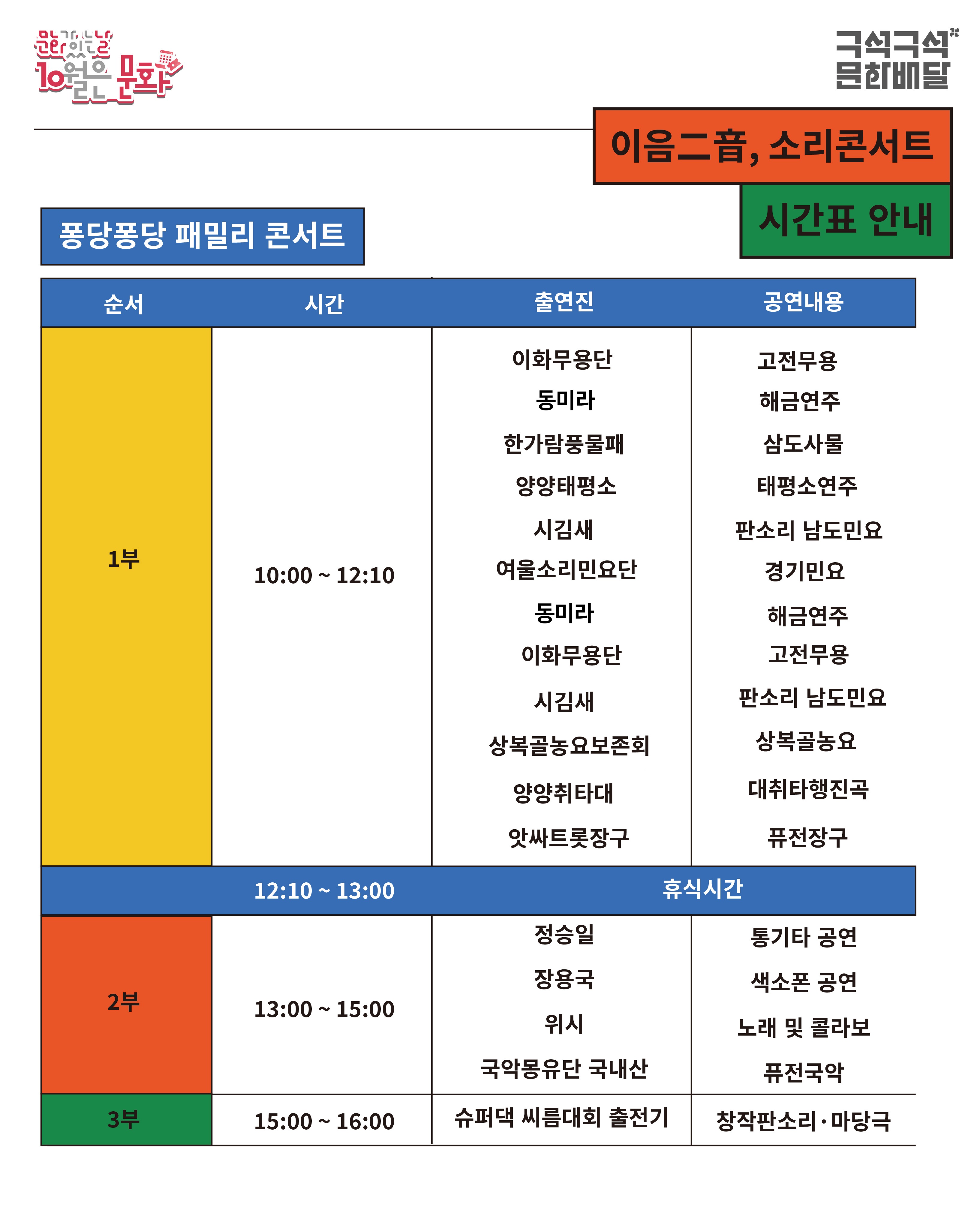 남녀노소 함께 즐길 수 있는 풍성한 음악 잔치!