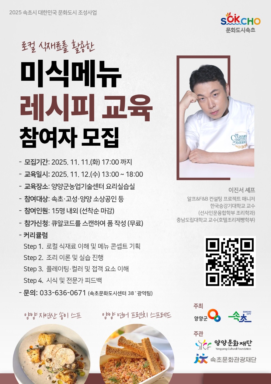 로컬 식재료를 활용한 <미식 메뉴 레시피 교육> 참가자 모집